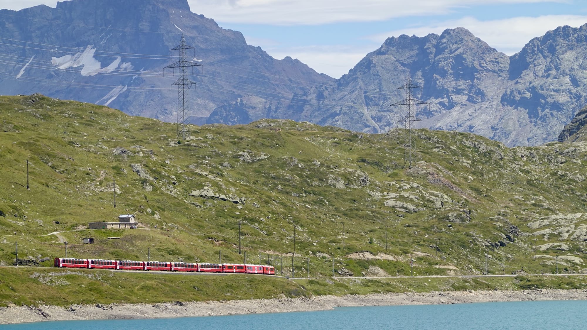 For our second hike of the week, we headed to an easier and shorter route with amazing views - first circling a lake right at the top of the Bernina Pass, then descending past huge vistas to a famous train stop.