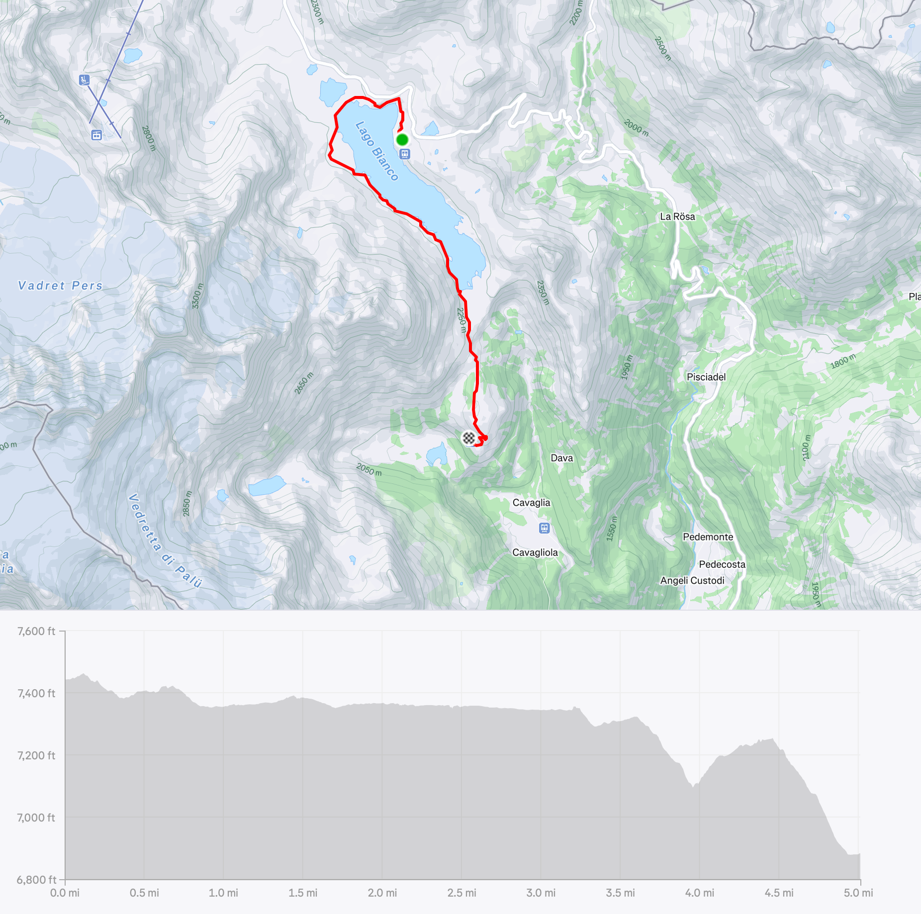 - Trails: Around Lago Blanco, then down to Alp Grum station