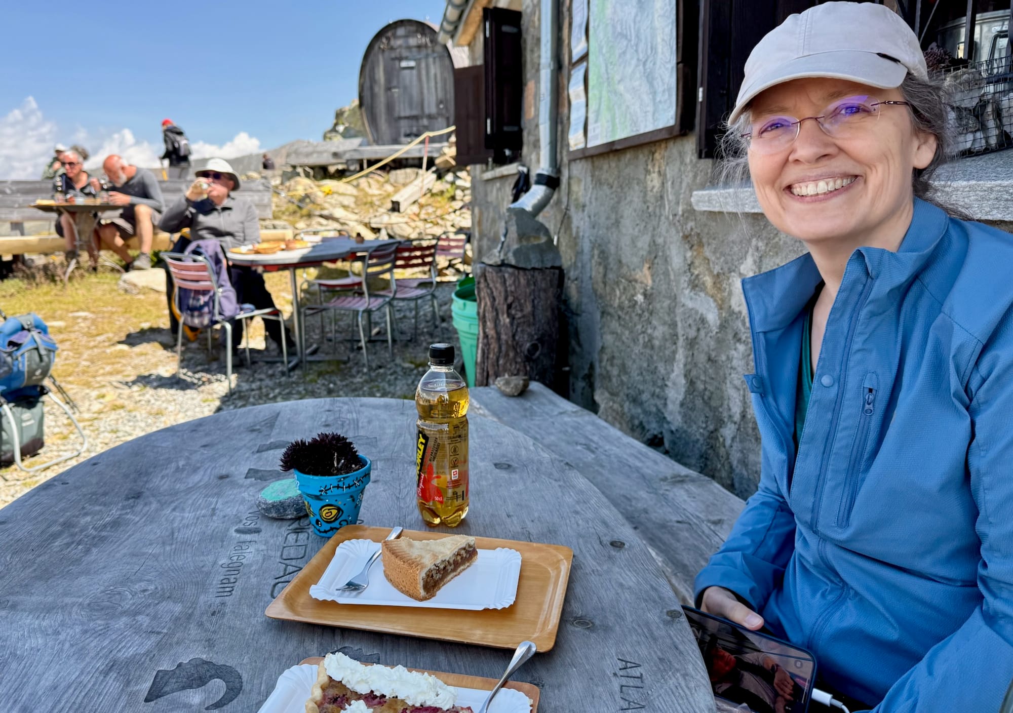 Once at the top, we chilled out with apple juice and pastries while soaking in the view along with several dozen other hikers.