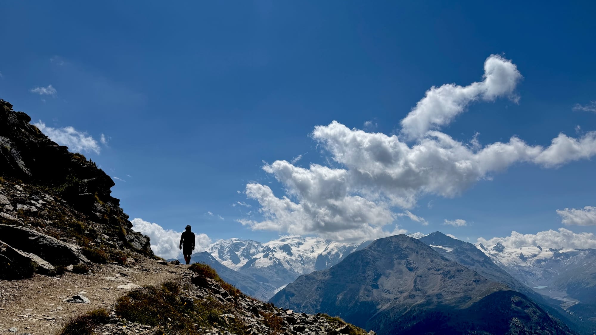 Michele and I are spending a month or so in Switzerland, to chill and to hike. This was our last hike in Pontresina, and the one with the best views of the entire amazing region.