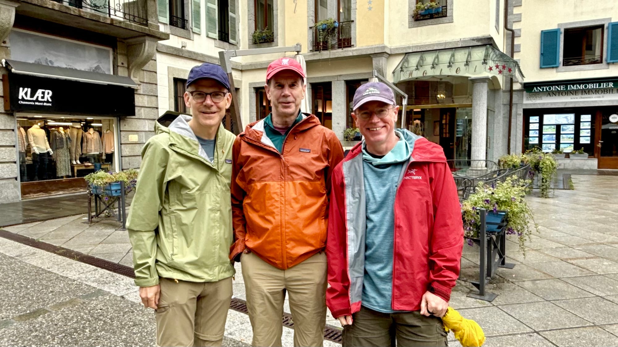 This is staging day. Mark and Brian arrived in Chamonix last night, spending today recovering from jet lag. Michele and I drove over from Champéry late in the afternoon, checking into the same hotel. Then we went out together for dinner.