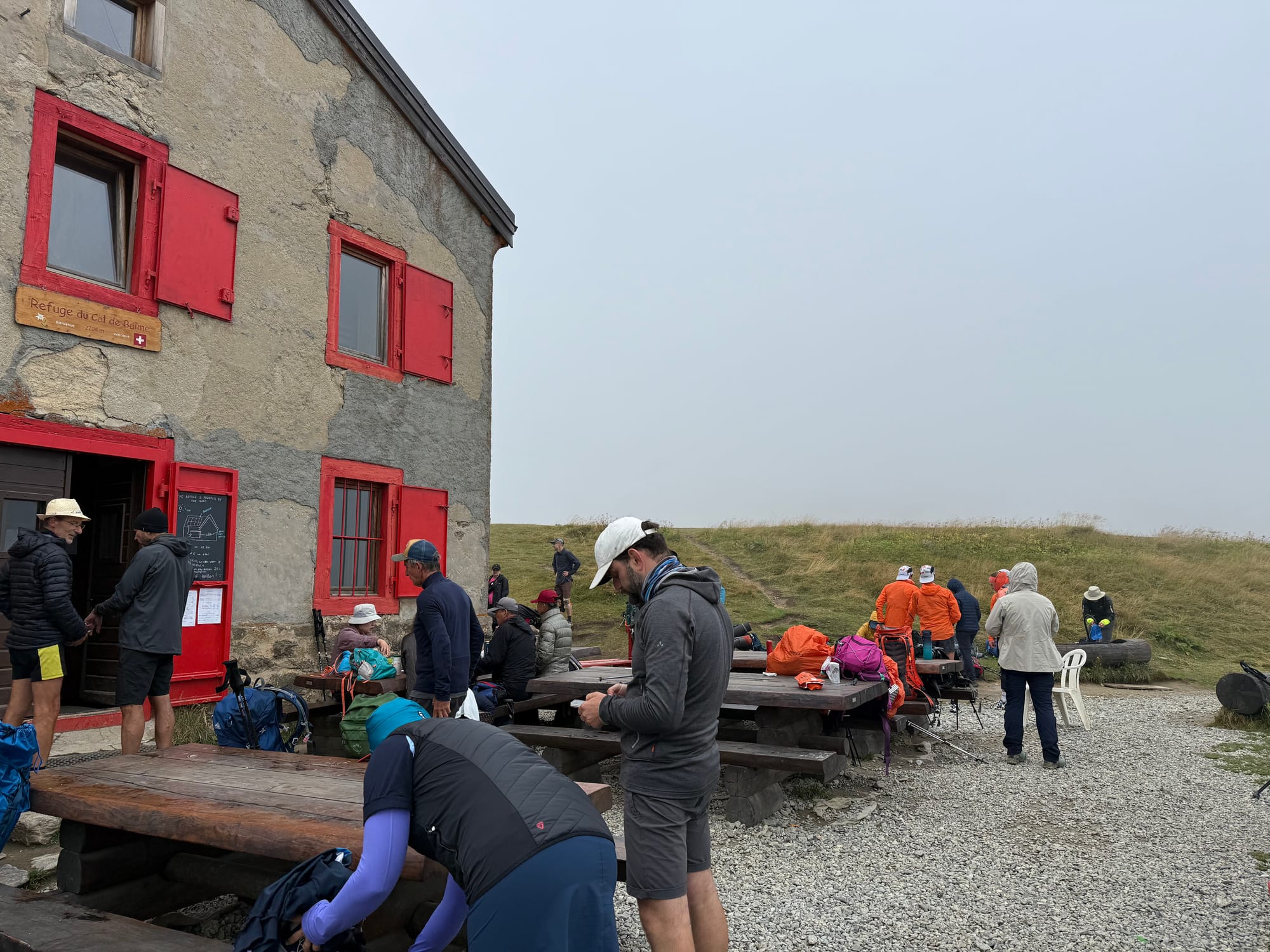 The refuge up there was packed with hikers of all types - tourists who had taken gondolas to get there, trail runners, day hikers, hikers on long trips like us, and backpackers loaded with big packs. I went into the refuge to check the menu, saw the long line for coffee, and then heard an American asking "could you just make me a flat white". "A what??", asked the poor woman behind the counter. I left.