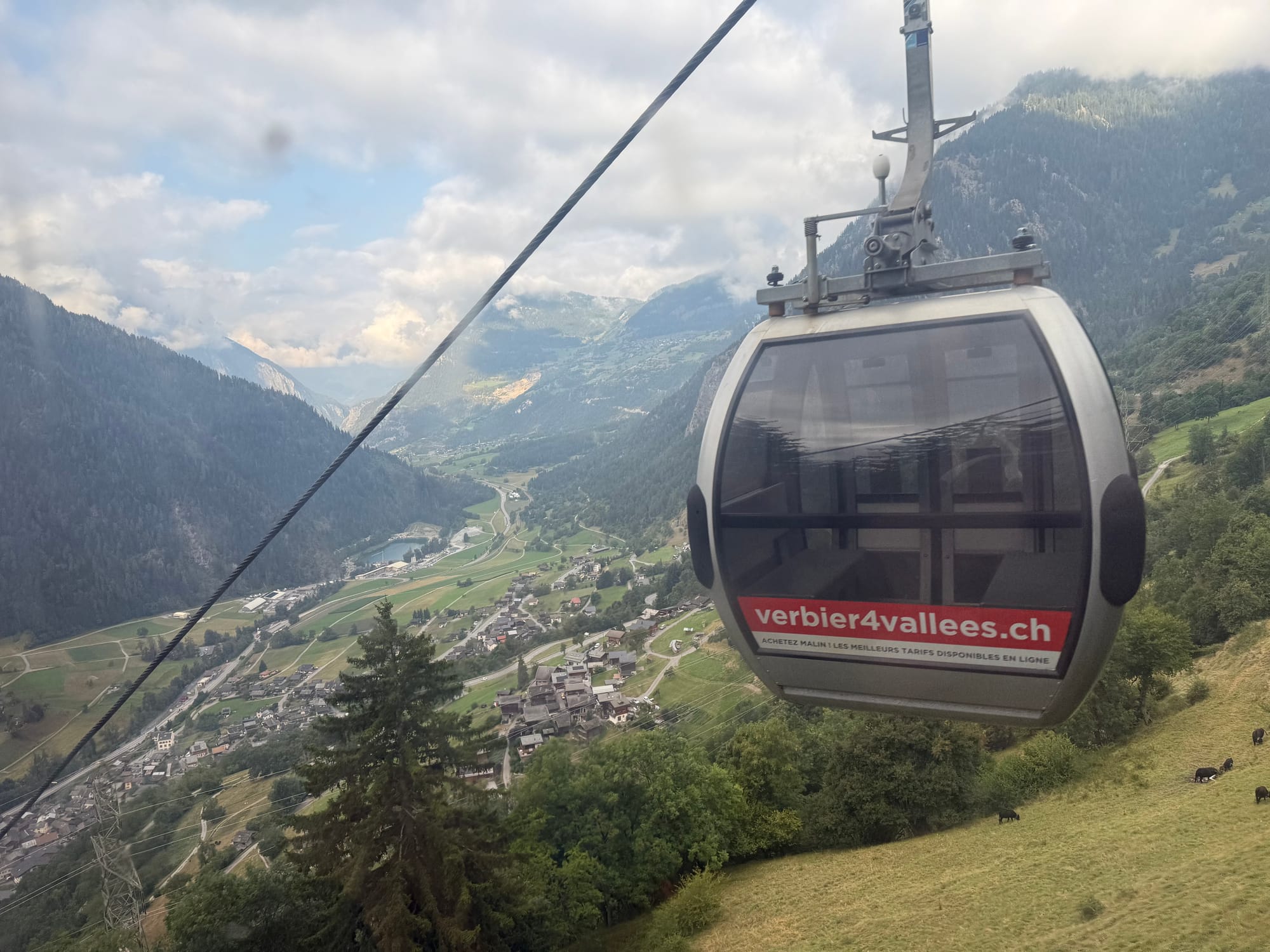 And then, completing the classic bus/train/up Swiss trifecta, we took a gondola up to Verbier, which cut out a small portion of the amount of elevation we'd gain during the day, and put us back at roughly the same height we'd started the day at in Champex.