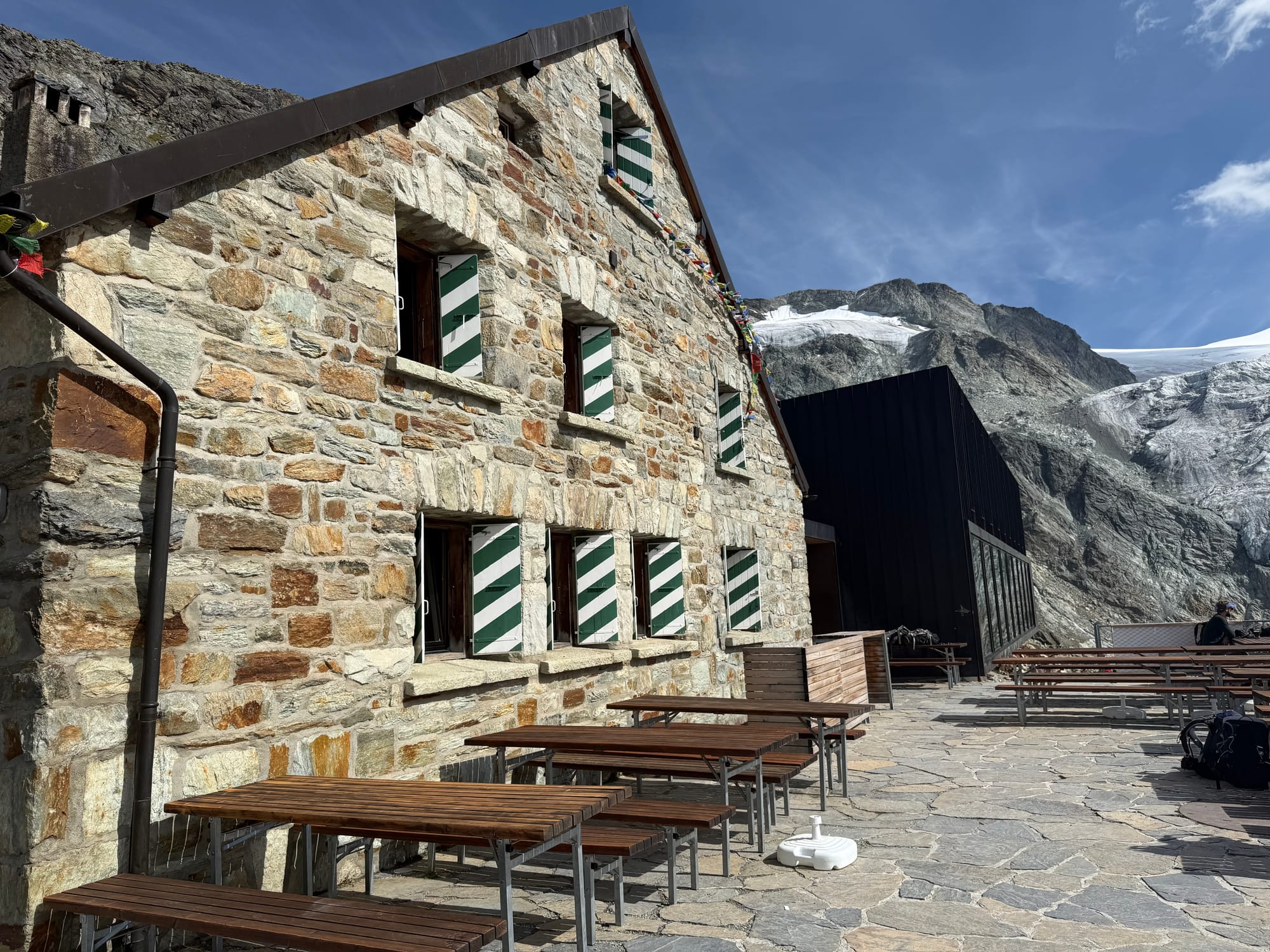I started wrtiting this while out on the hike at the end of Day 7, hiding from the rain on the porch of our hotel in Zinal, wallowing in the power, wifi, and warmth. Dinner arrived, and then there was prep for the next day, and then Days 8, 9, 10, and 11 consumed me.