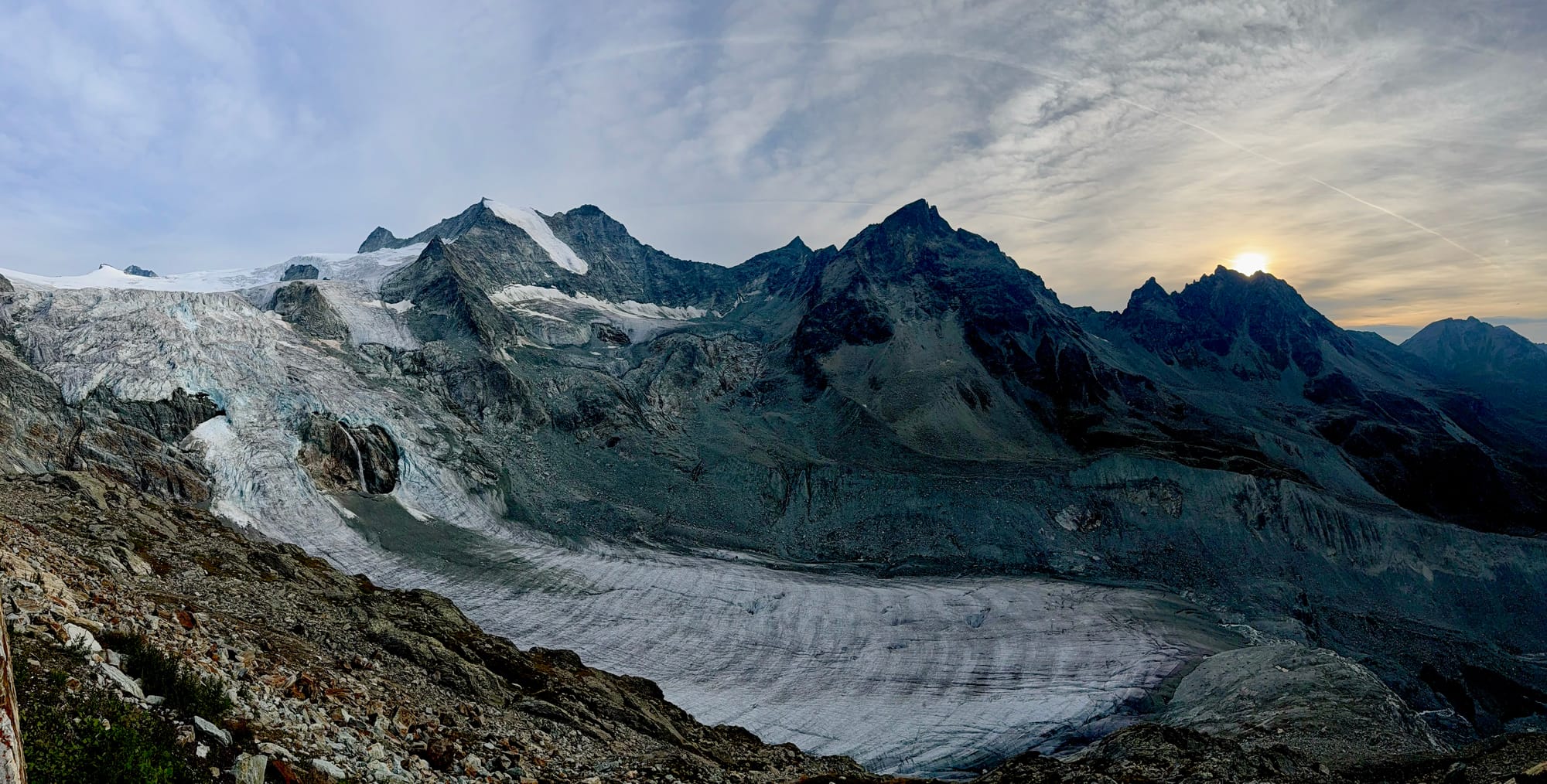 Photos and details of day 6 of our Haute Route hike, traveling from Arolla to they Moiry hut, perched high above an amazing glacial valley.