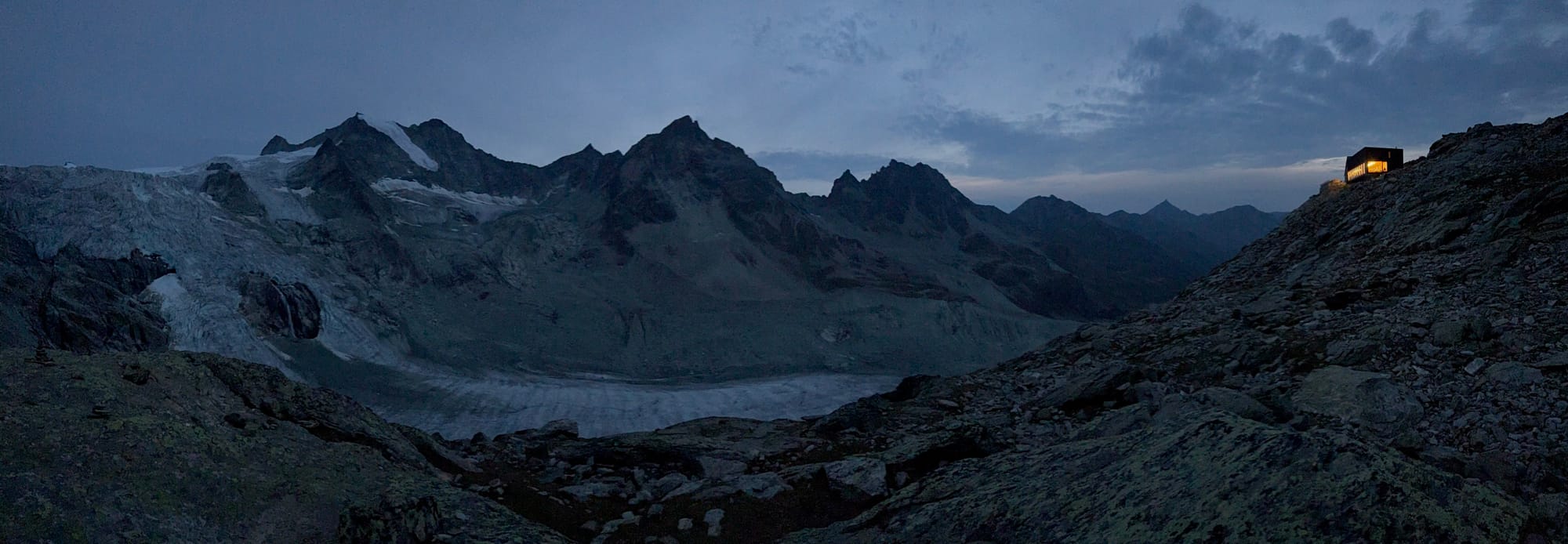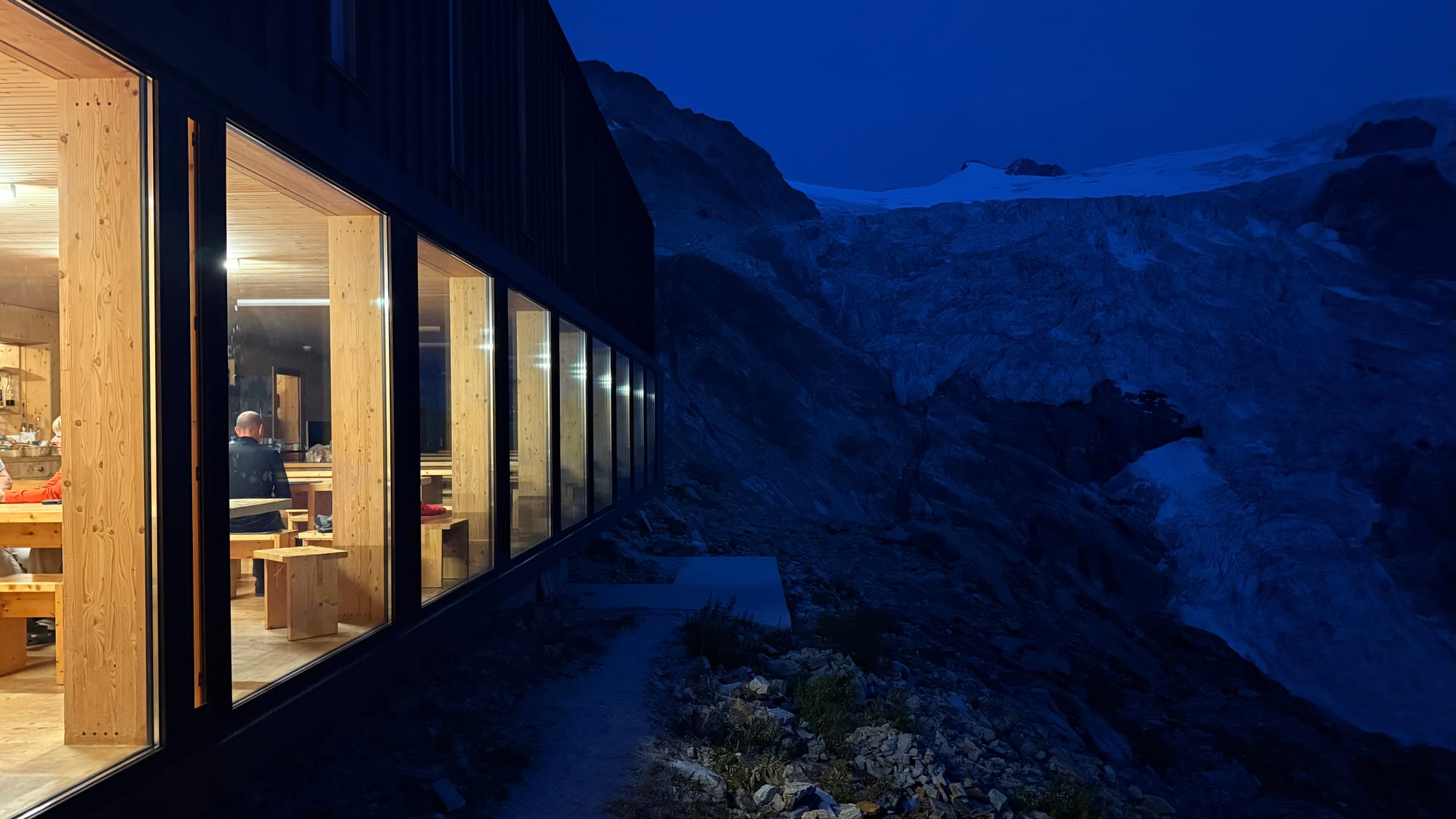 After about another hour of ascending, we arrived at the impressive Moiry hut, which is a combination of an old alpine hut shown here in the foreground, and a new modern addition attached at the back.