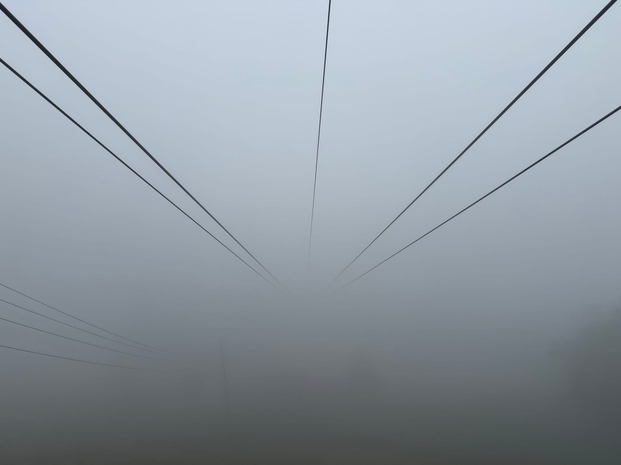 It was a vaguely exciting trip on the small gondola on those small cables through the fog.