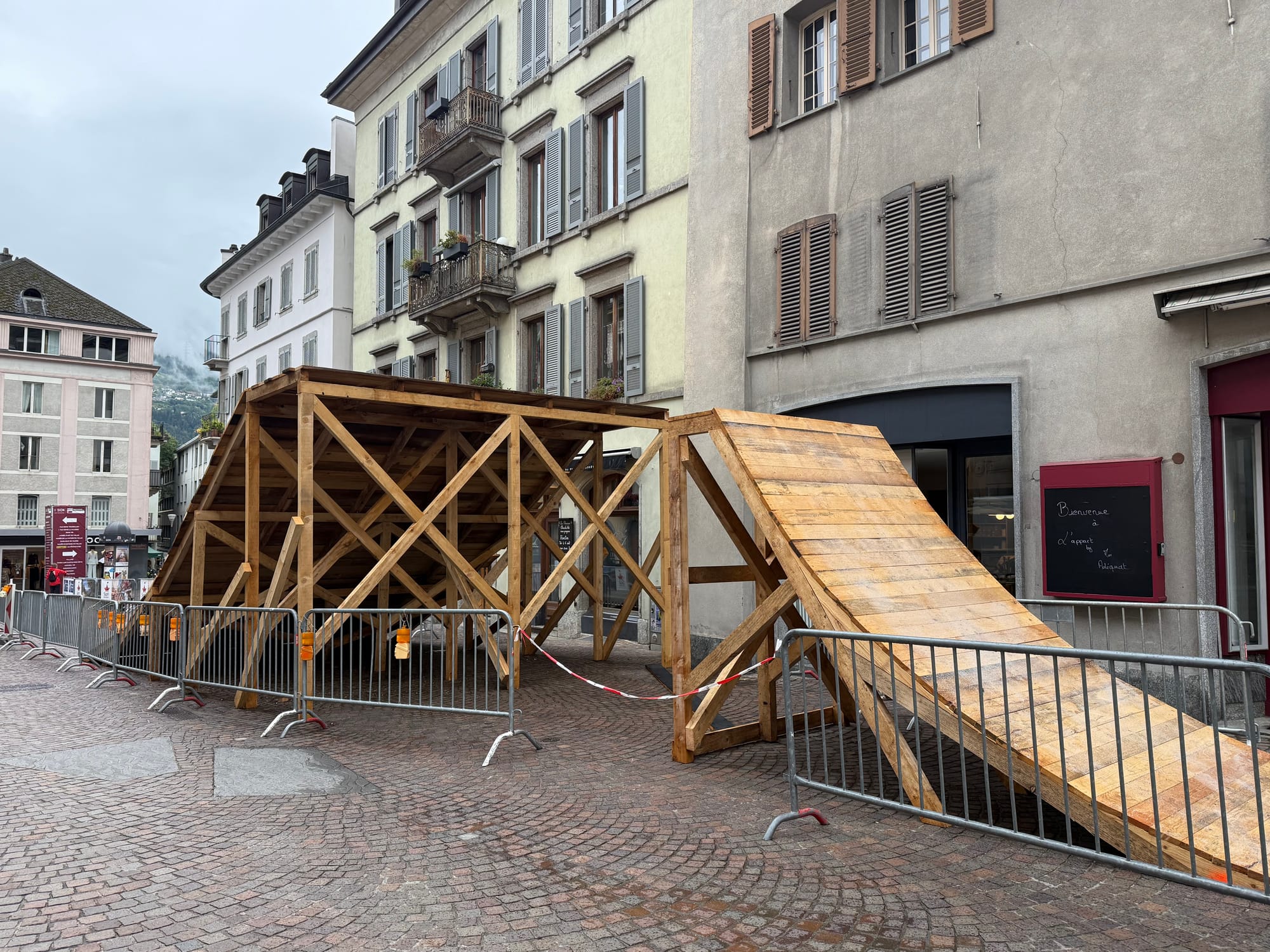 We drove down to the Rhone Valley and then went over to Sion for lunch. Turns out that the Mountain Bike World Cup would be hosting the Slope Style competition in Sion in a few days, so we got to see the set up of the ramps for jumps that were all over the downtown area. Very cool!